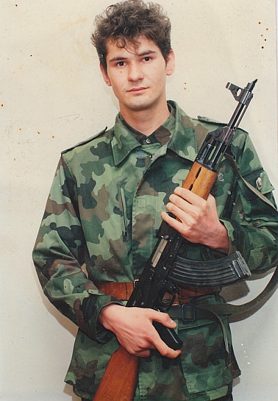,,Као и већина из генерације рођених 1972. након завршетка средње школе упућен сам 1991.године на редовно одслужење војног рока у ЈНА. Био сам мартовска класа војника у Славонској Пожеги где сам оспособљен за ВЕС возача возача моторних возила. Након завршетка основне обуке у мају сам прекомандован у Војну болницу Загреб, где сам остао све до потпуног повлачења припадника ЈНА из Загреба у фебруару 1992. Са том последњом колоном када је размењен и генерал Аксентијевић дошао сам прво у Бања Луку, једно вече смо преспавали на Мањачи, да бих следећег дана добио распоред у ауто-вод Команде стана 2.Војне области у Сарајеву. Био сам стациониран у згради позадинског дела Команде на Бистрику. Извршавао сам разне задатке превоза људи и опреме.